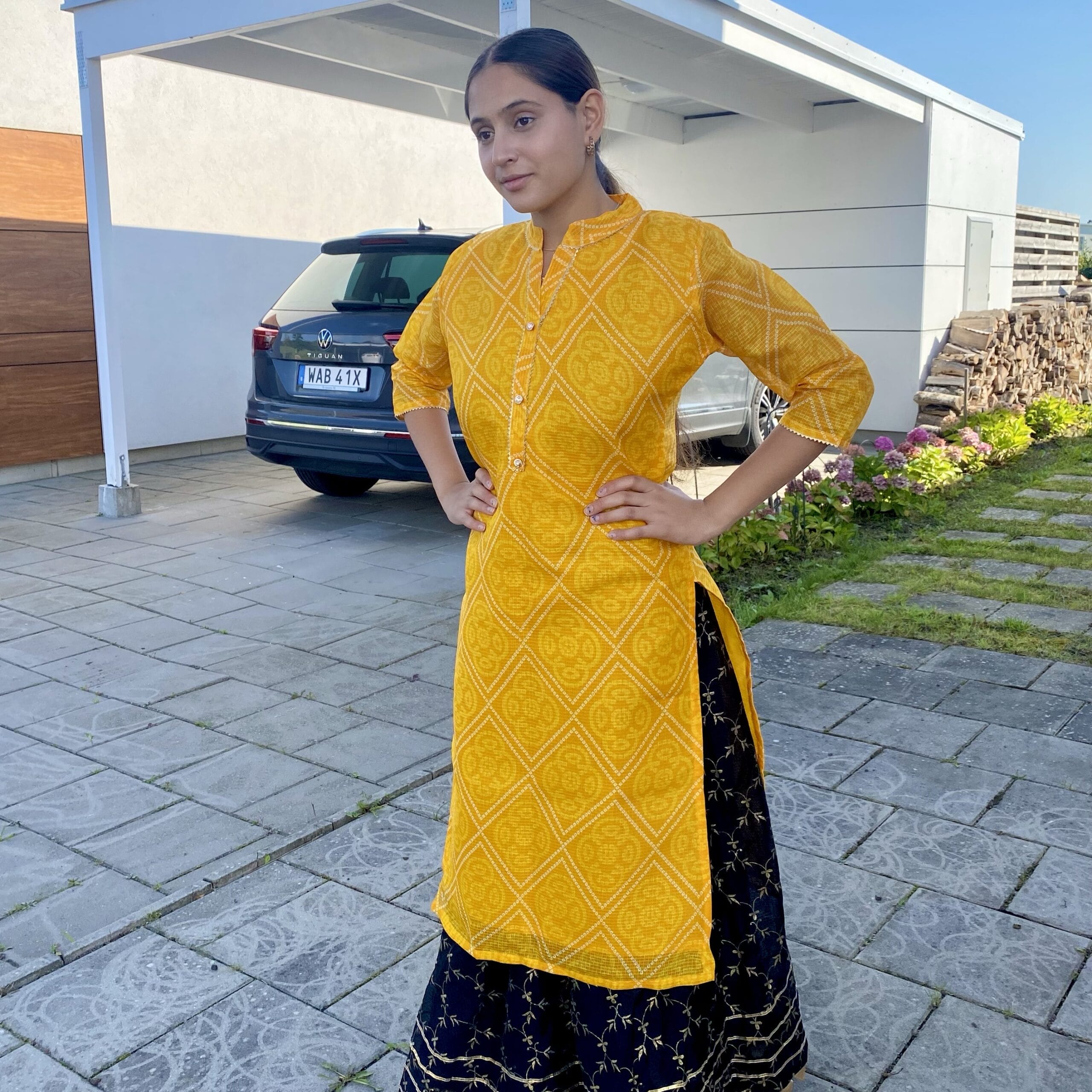 Made from airy Kota Doria fabric, it is perfect for long wear, offering ease of movement and a flattering silhouette. The clean straight cut and subtle detailing make it suitable for daily wear, casual outings and light festive occasions.
