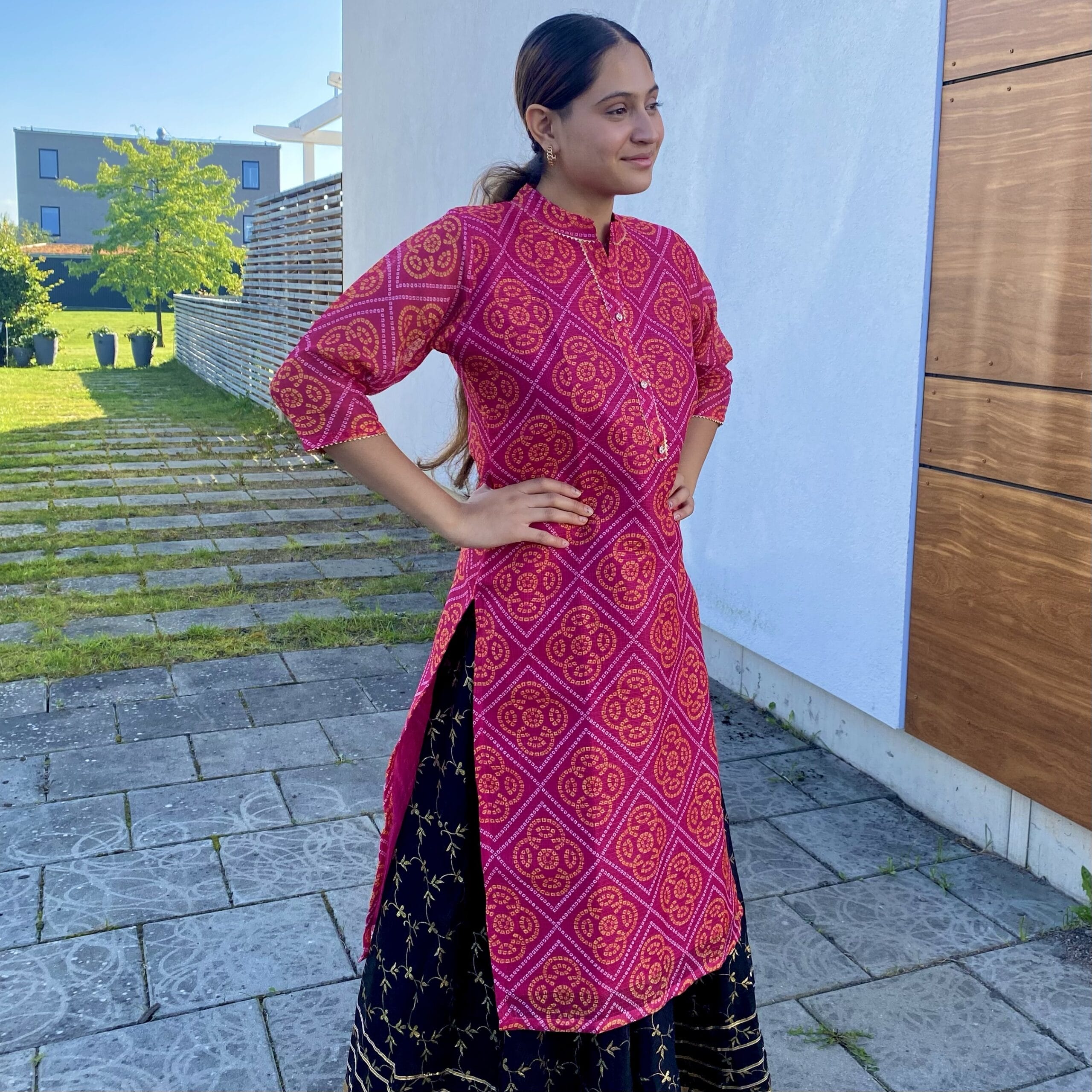 Be the first to review “Bandhani Print Kota Doria Regular Straight Stitched Kurti”