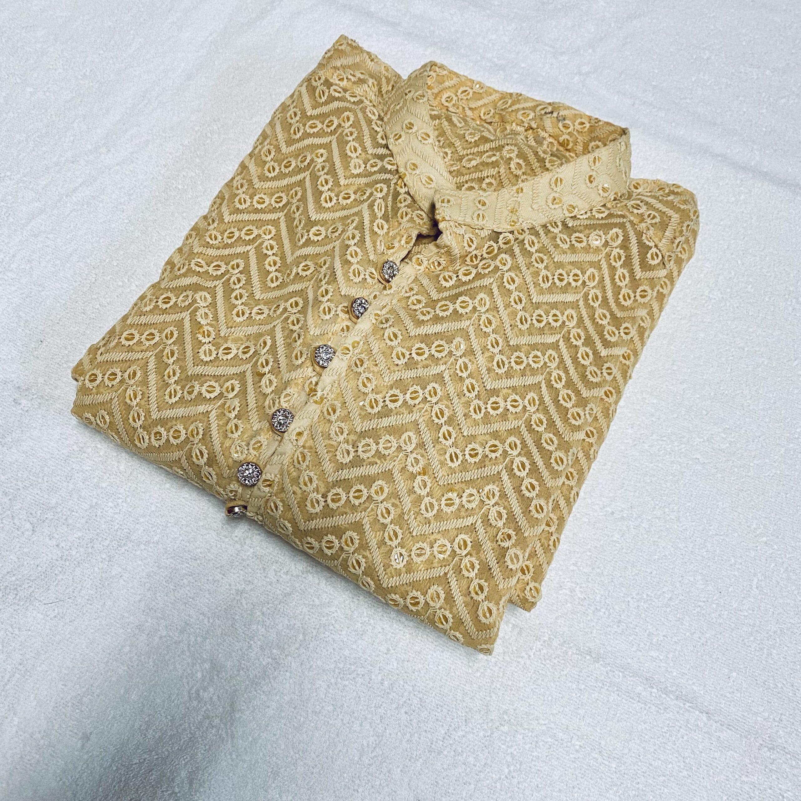 Chikankari Embroidered and Sequin Men’s Kurta – Cream