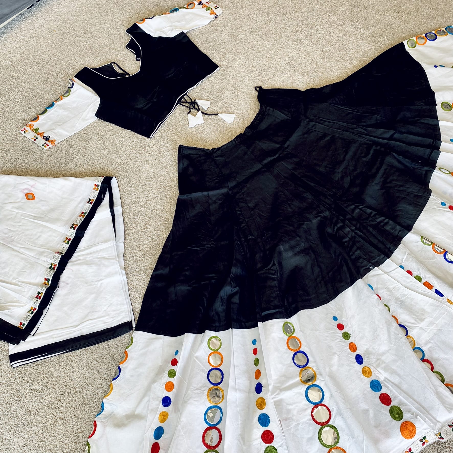 Be the first to review “Fully Stitched Chaniya Choli Lehenga Set – Black White Contrast”