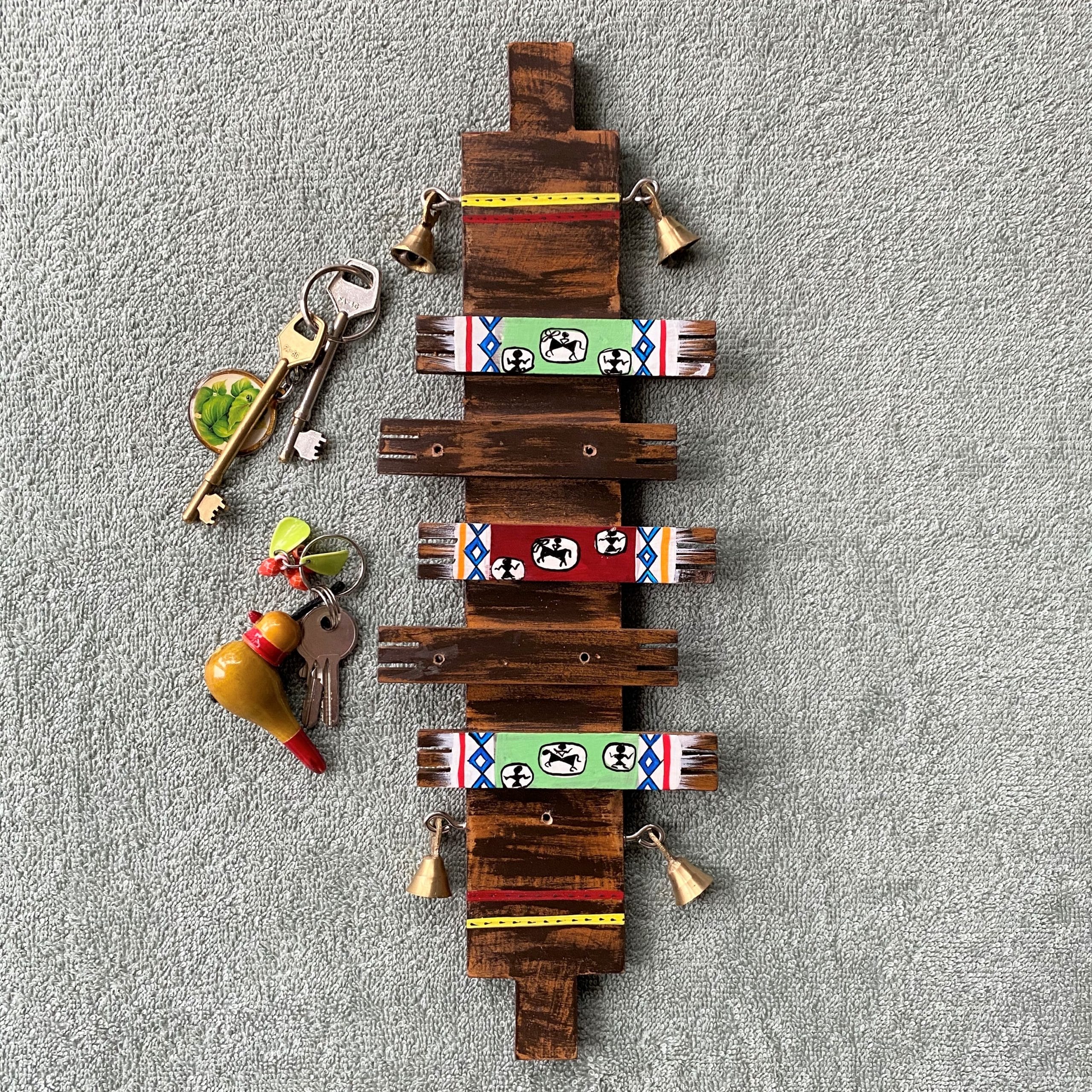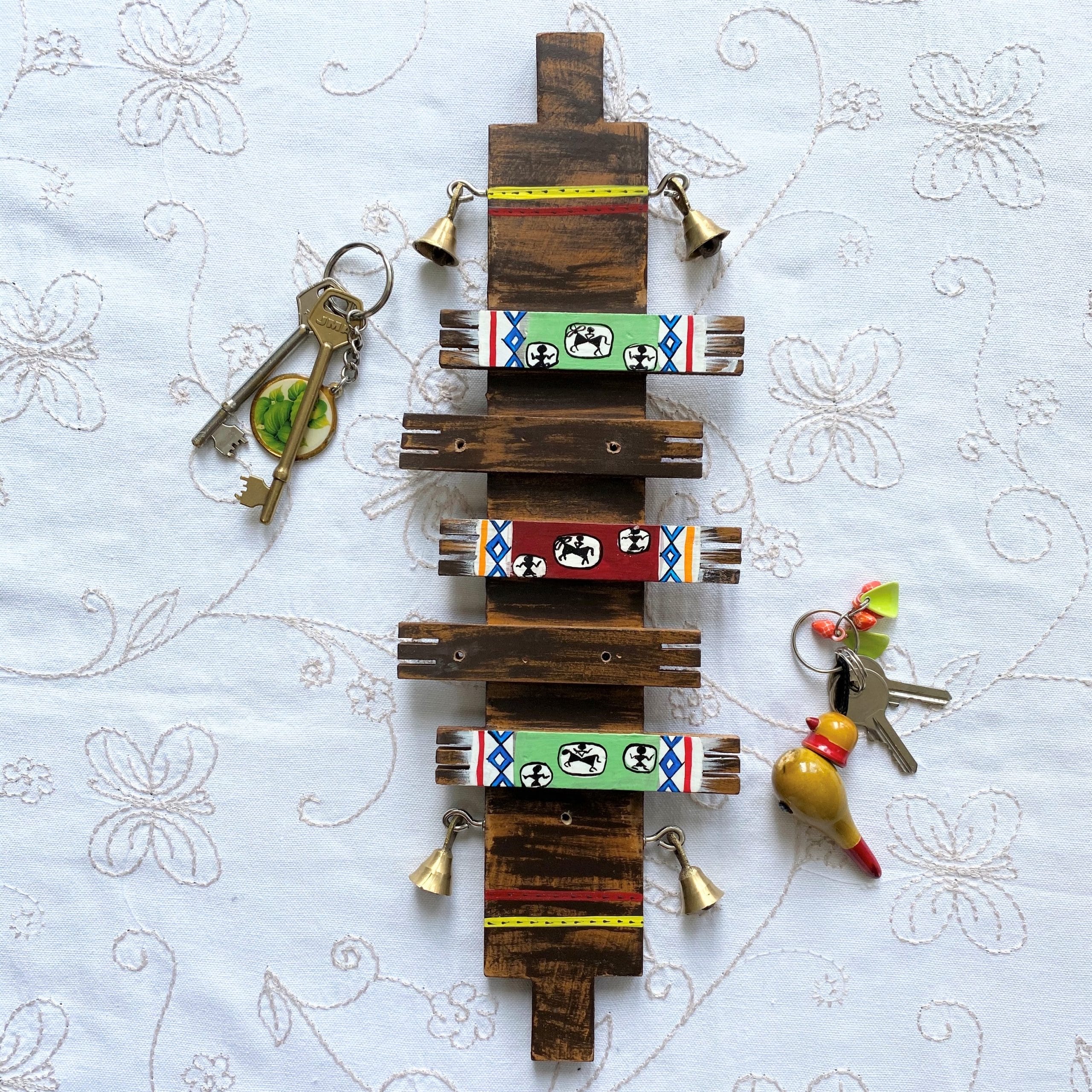 Made from seasoned wood and finished with detailed hand-painted patterns, this piece blends functionality with decorative charm. It serves as both a practical organiser and a subtle statement element for entryways, hallways, or living spaces.