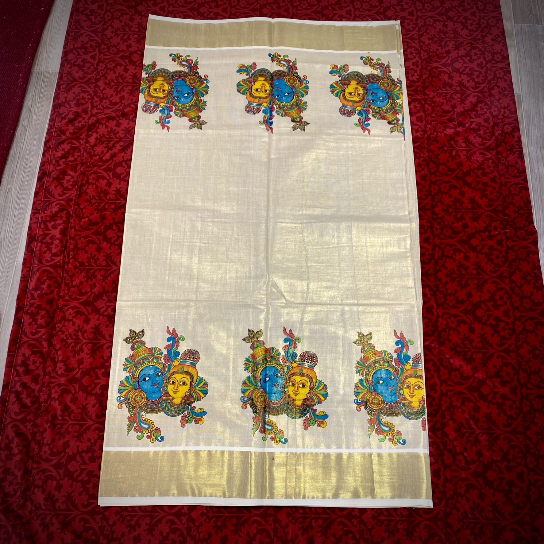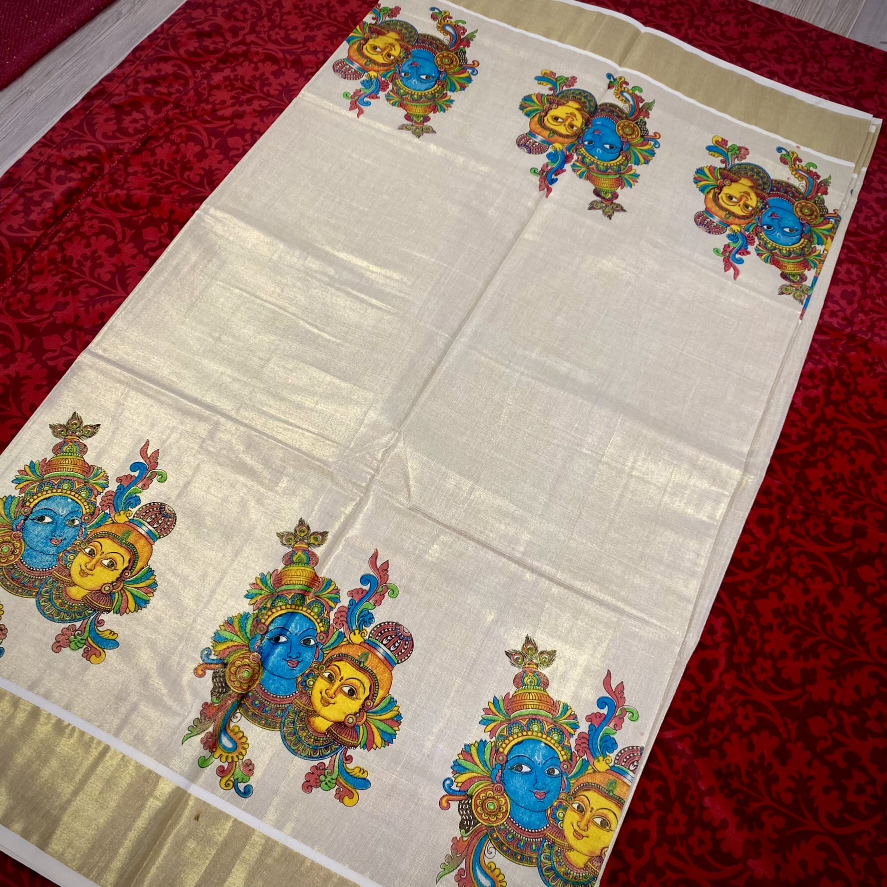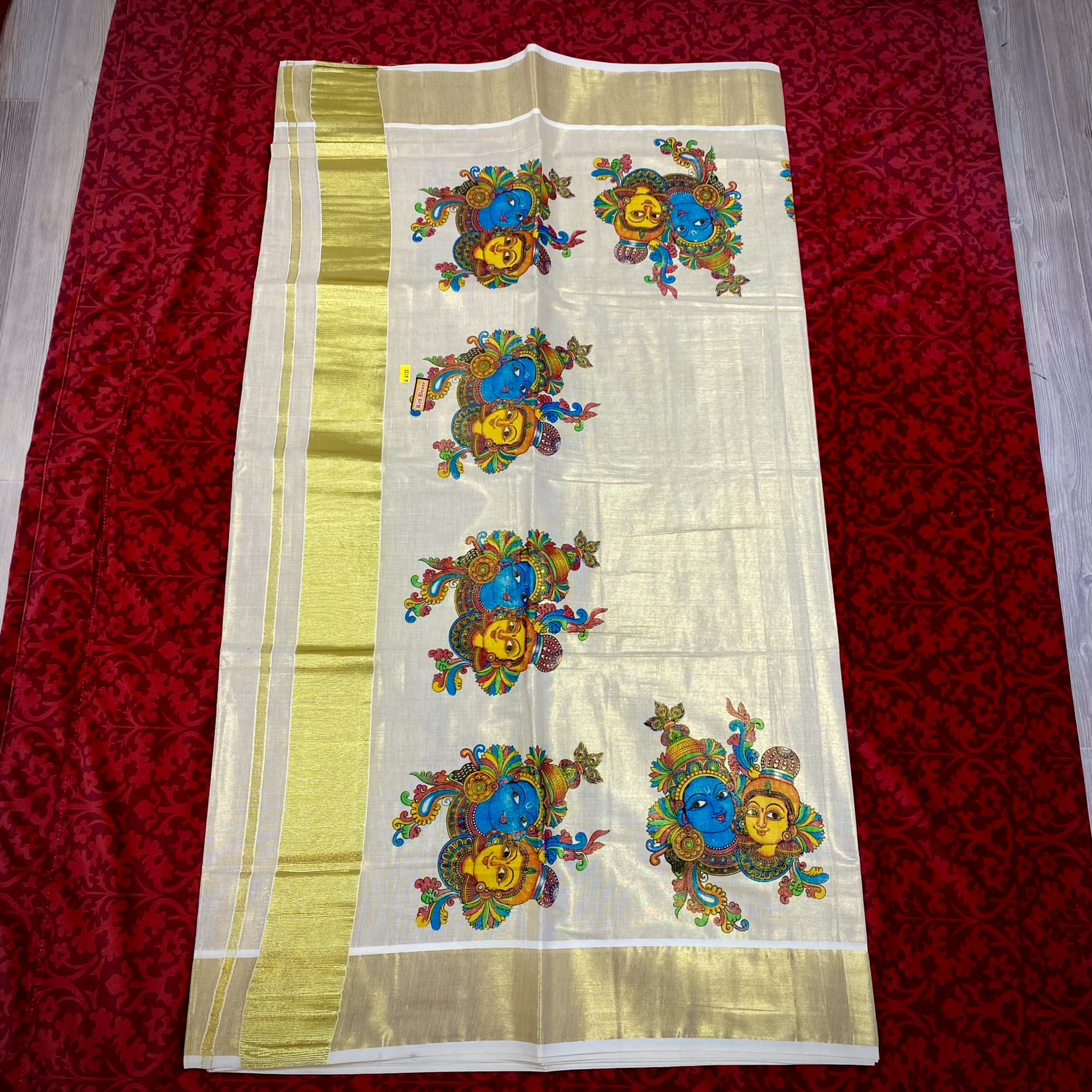 Kasavu Saree – Off White with Mural Art and Gold Border