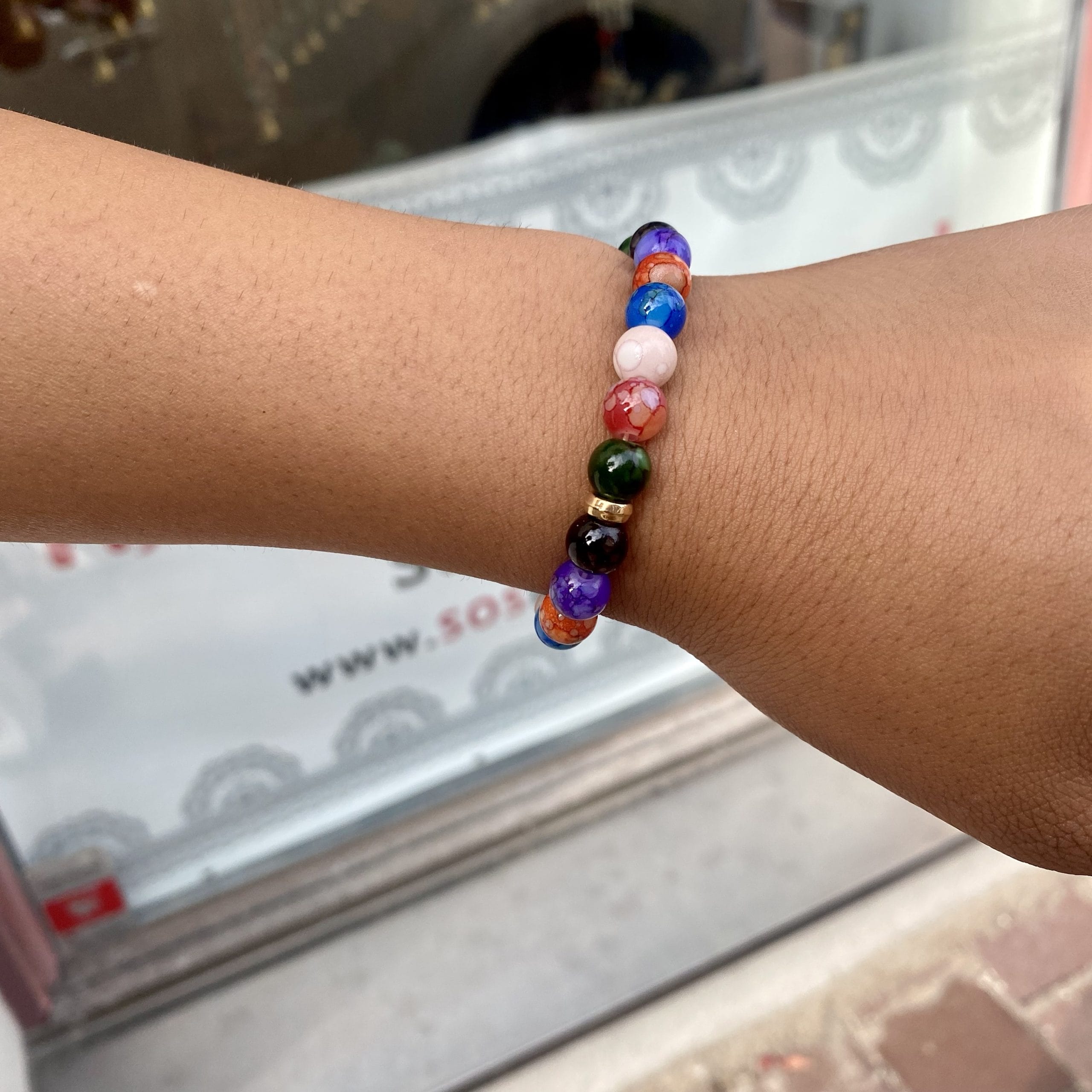 Colorful chakra bracelet designed for a vibrant and modern everyday look.