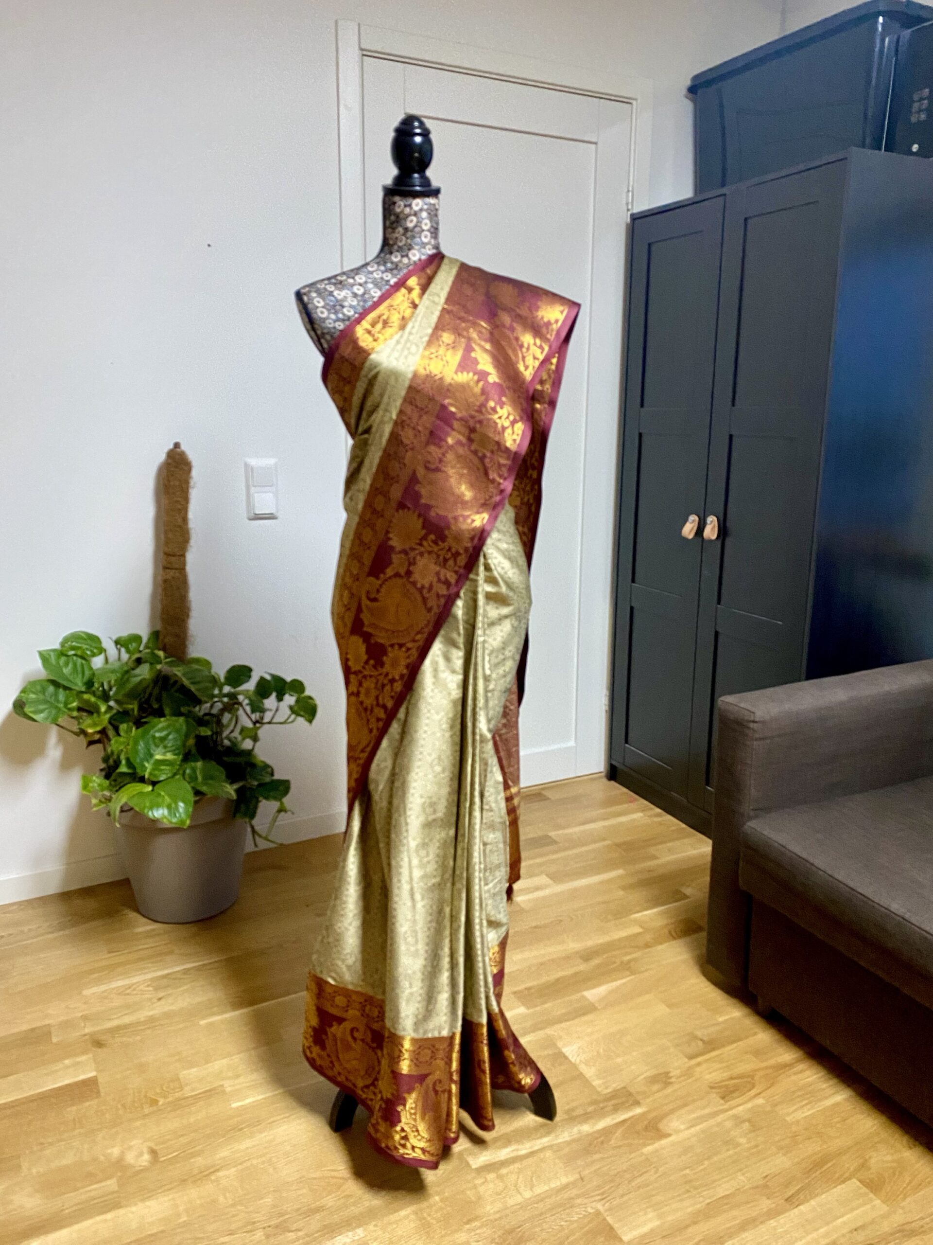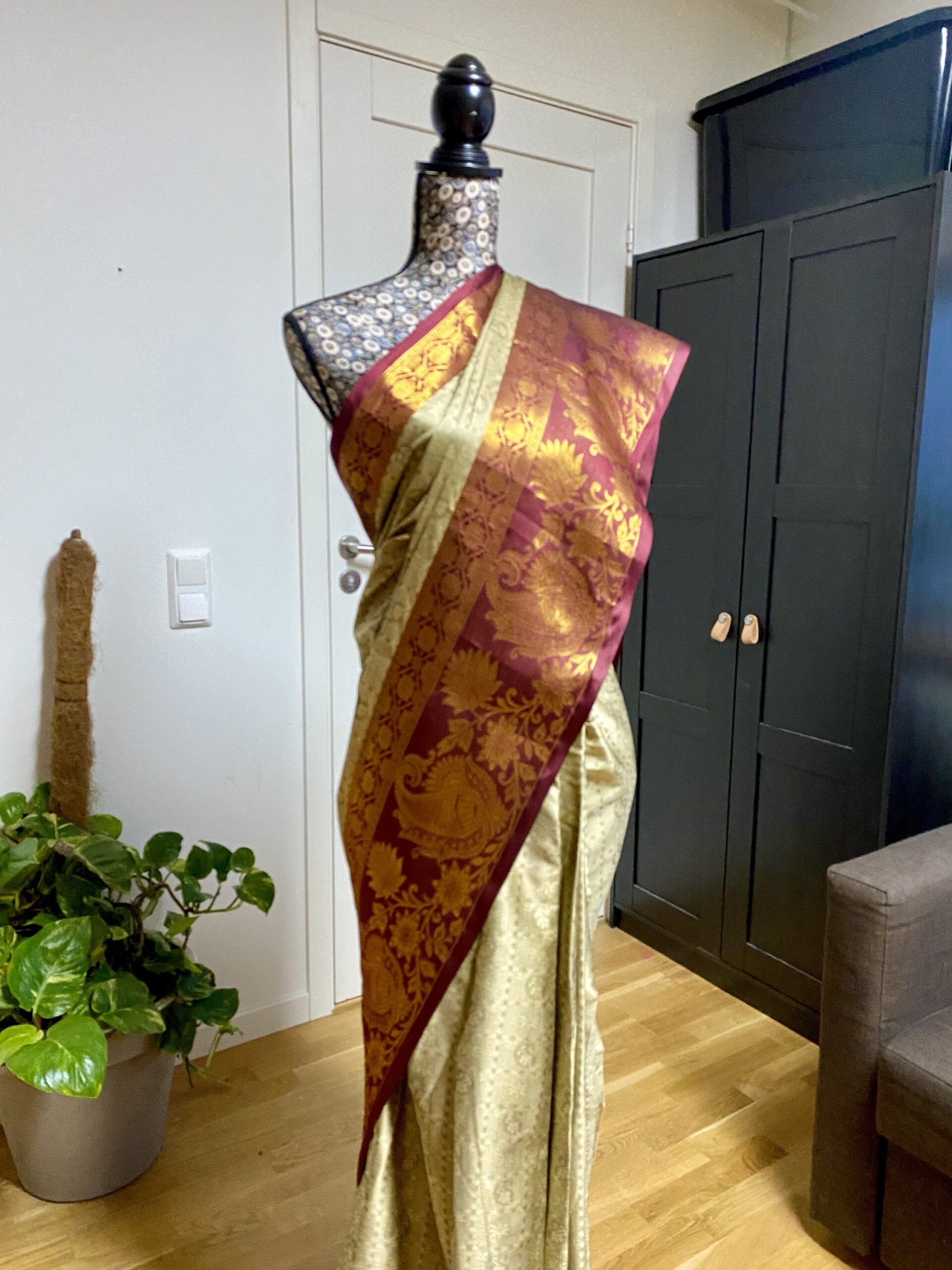 Be the first to review “One Minute Saree – Maroon and Antique Gold”