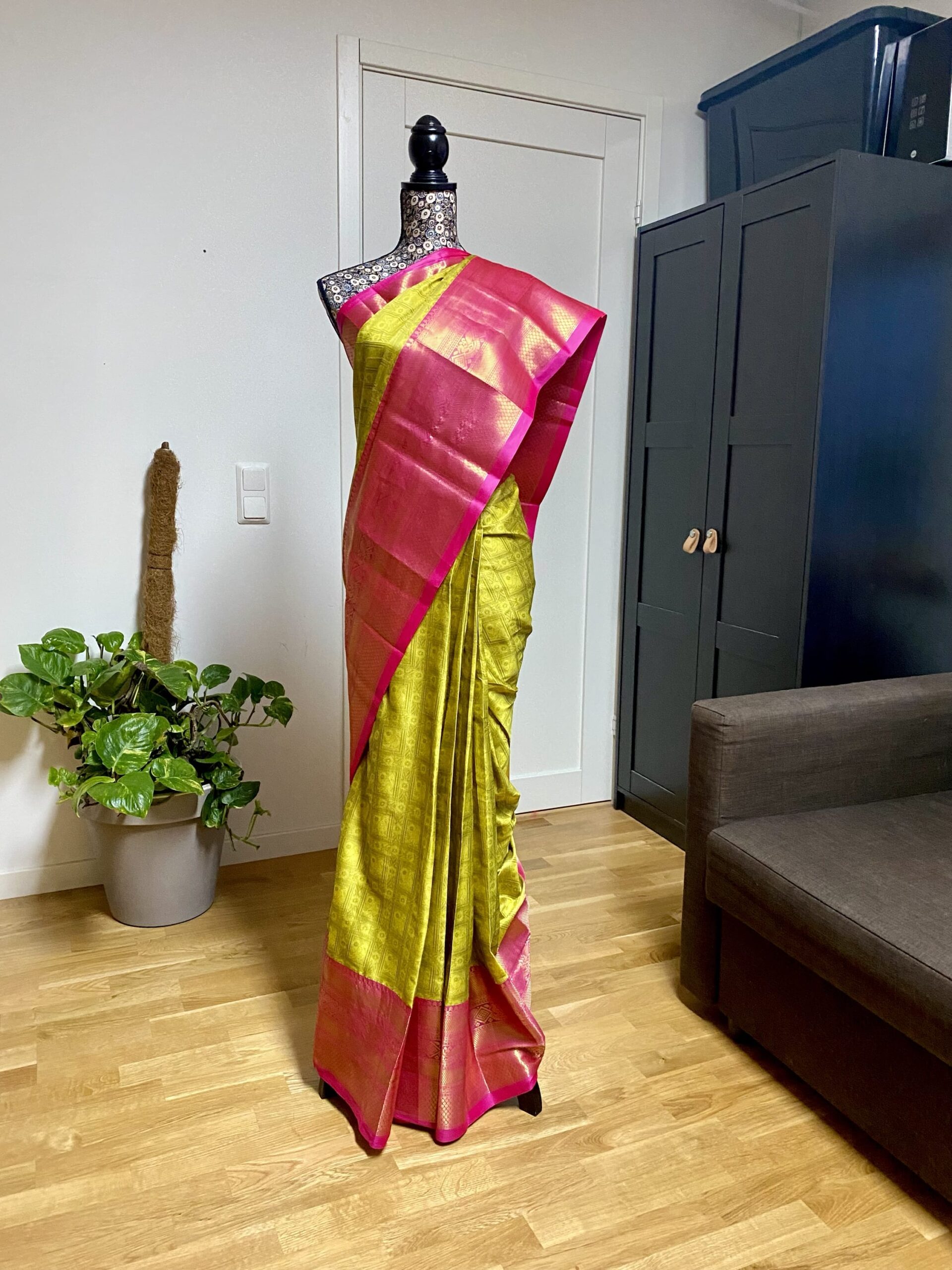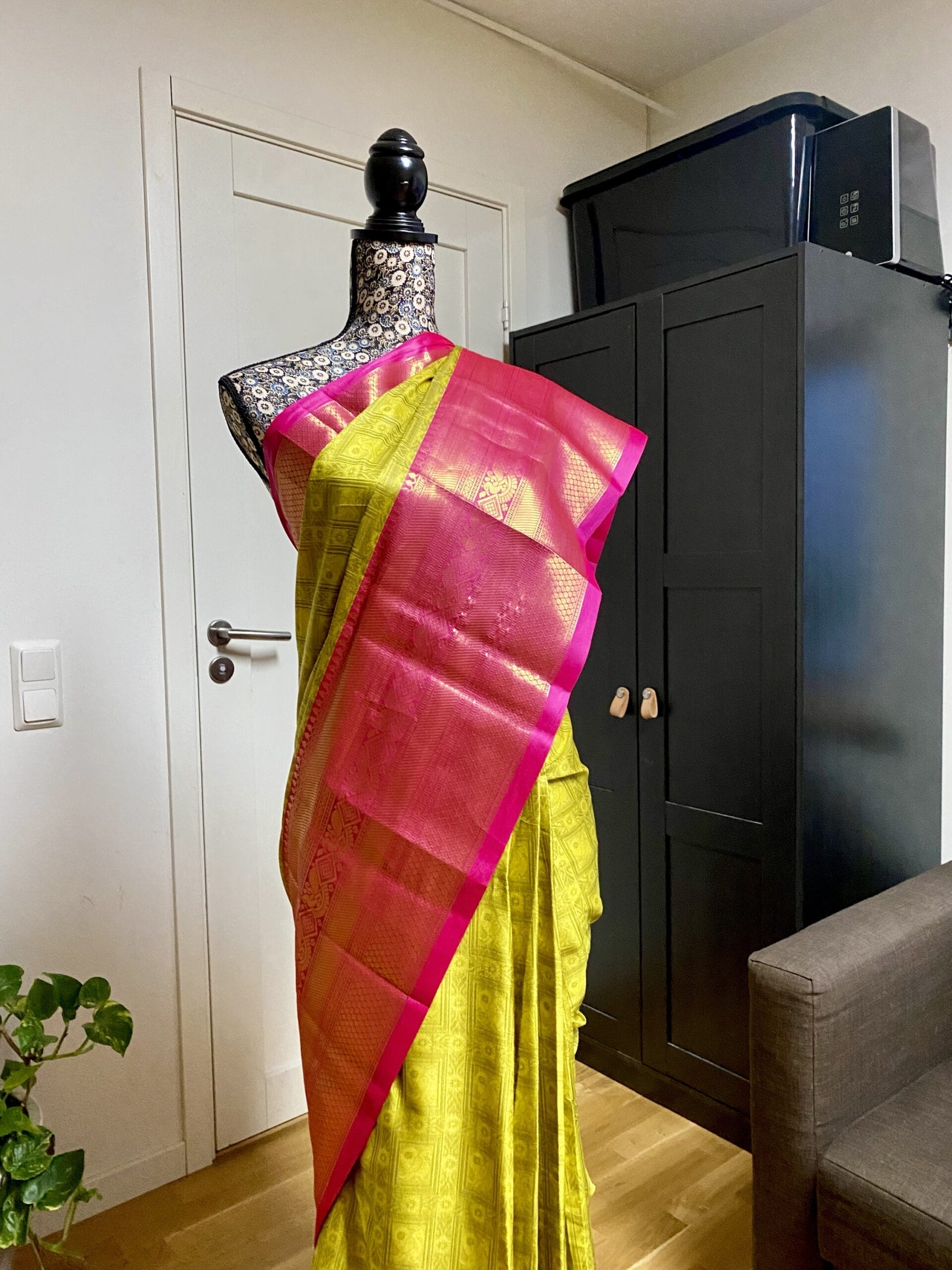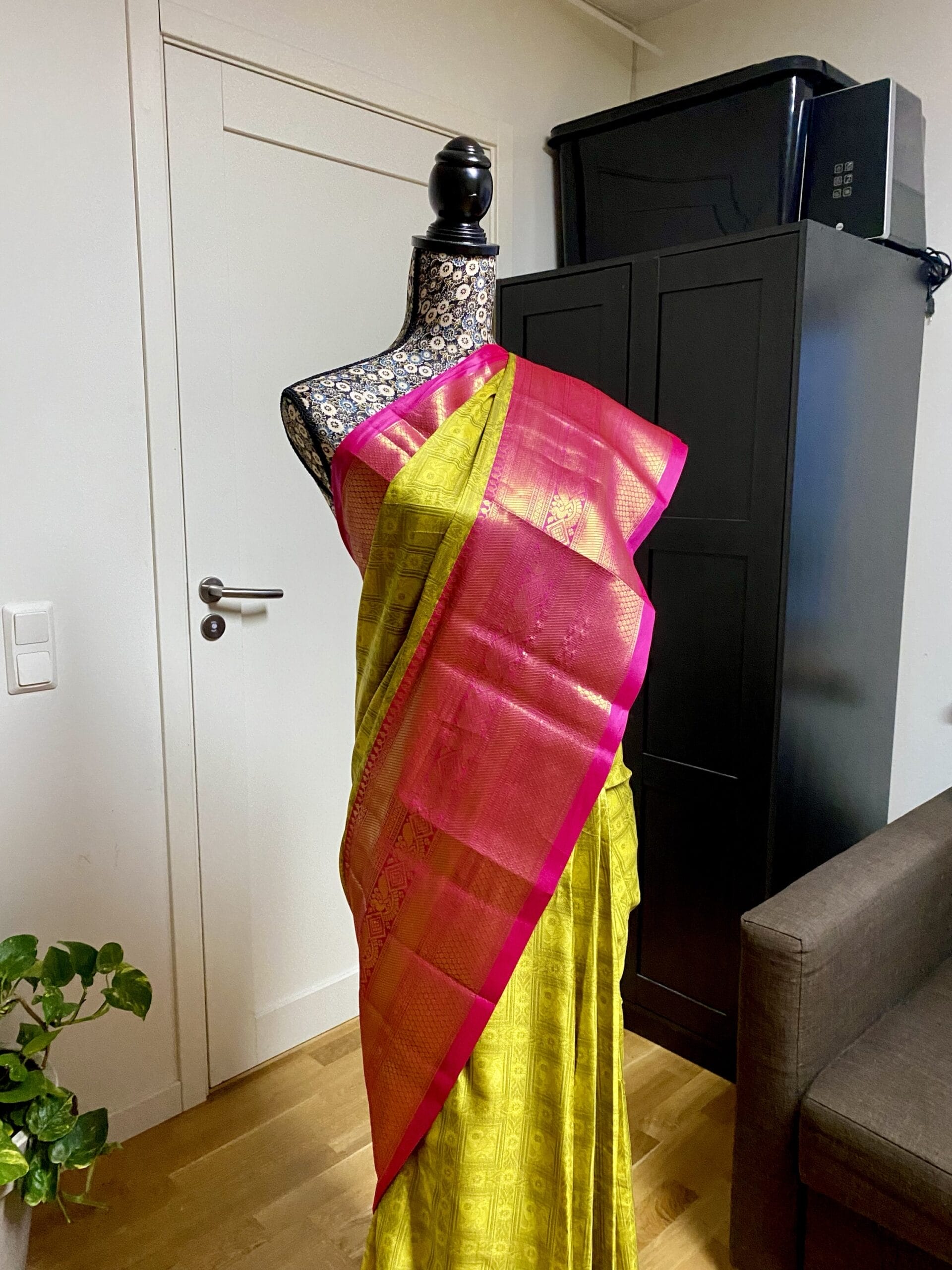 One Minute Saree – Rani Pink and Mustard Yellow